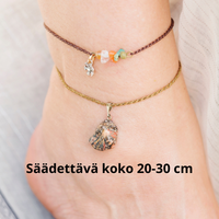 Nilkkakorujen ketjut ovat nikkelivapaita tai luonnon materiaalista valmistettuja.